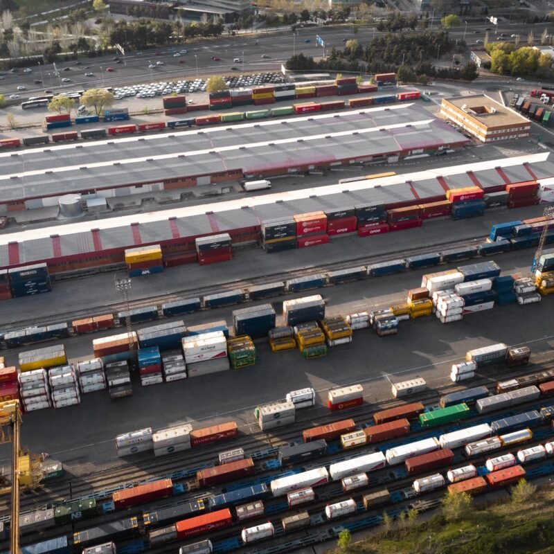 Separate zones for parking, loading/unloading, maintenance, and administration keep operations smooth. Wide lanes allow large trucks to maneuver safely.